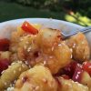 4. Once you’re ready to grout, I like to put the grout into a ziplock baggy and cut a hole in the end. I work in square sections, 4 rows of tile across and down. Squeeze the grout into the groves and wipe it out. This is a process and took me almost 2hrs.